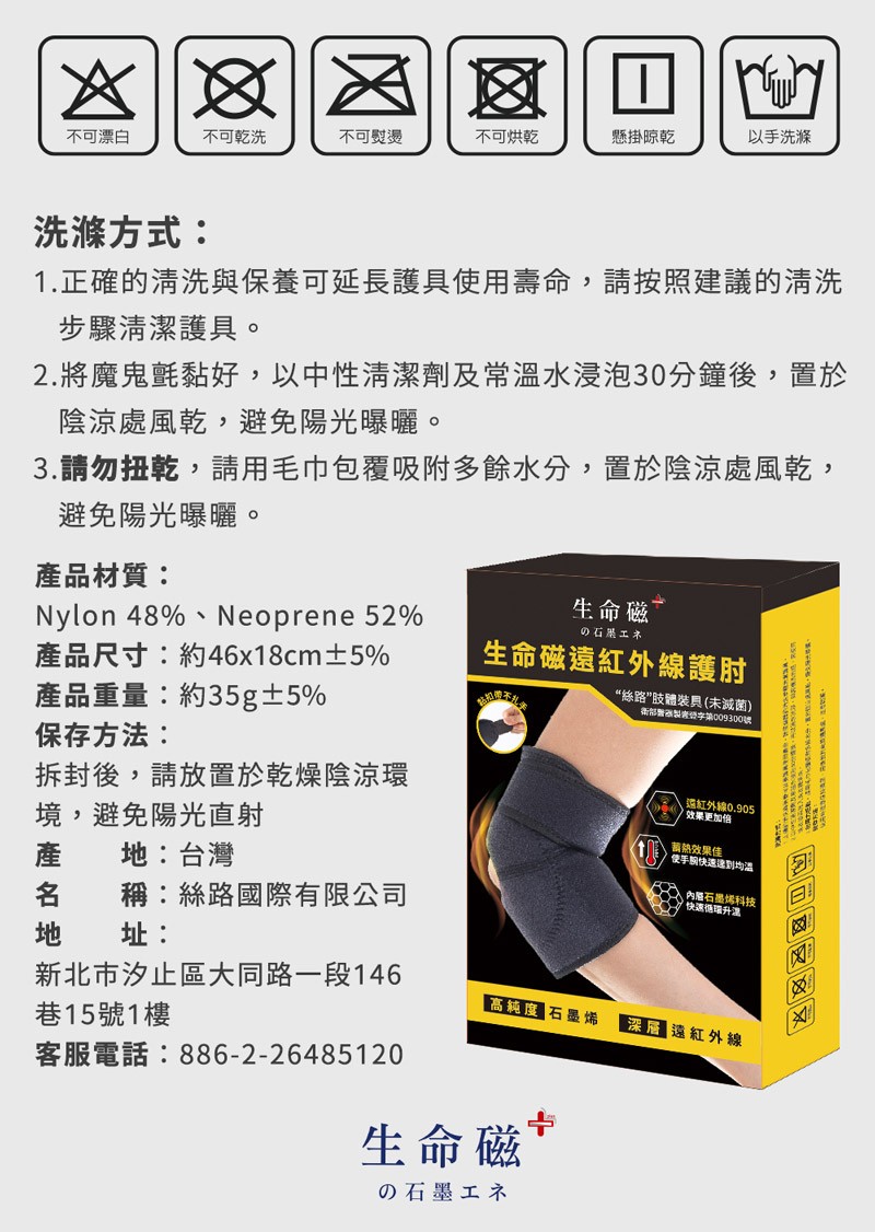 1、商品組合/規格:生命磁石墨烯遠紅外線溫感舒適護肘1入1只