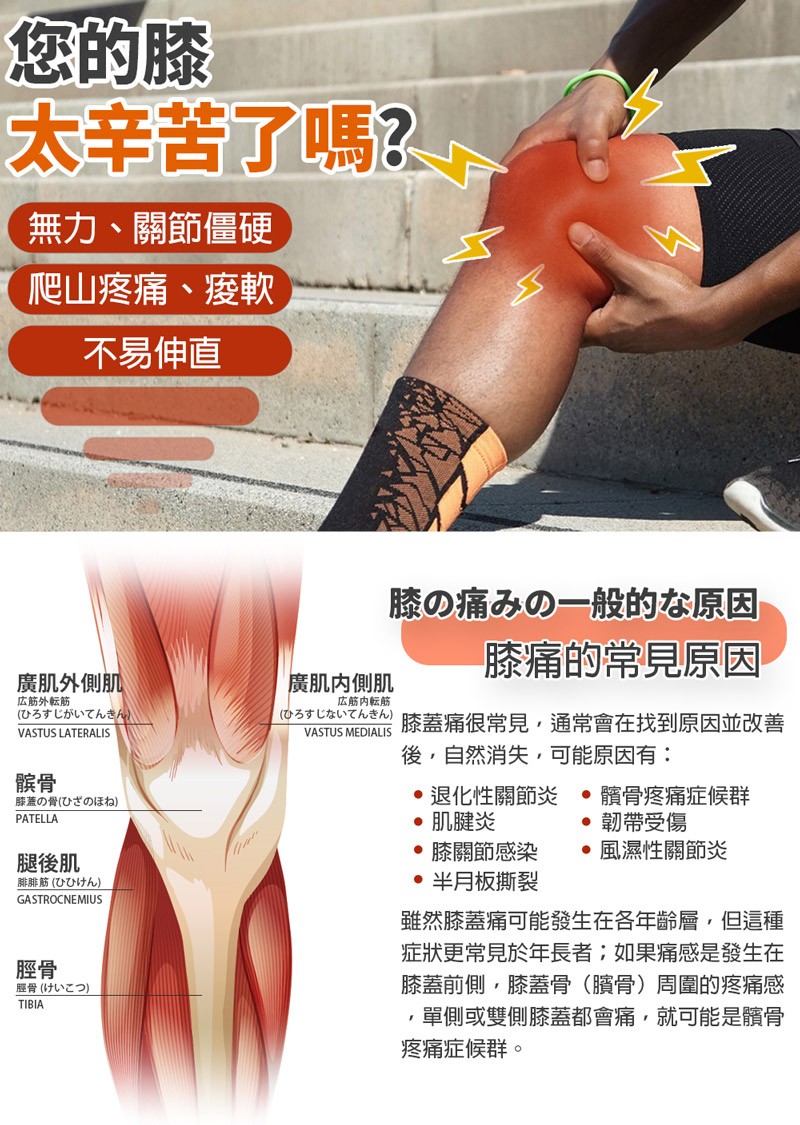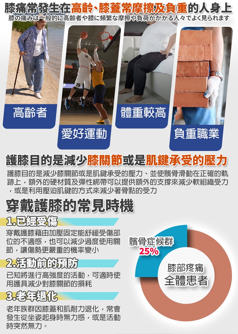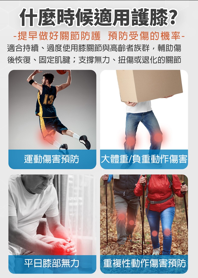 膝蓋骨周圍增加支撐力和保護