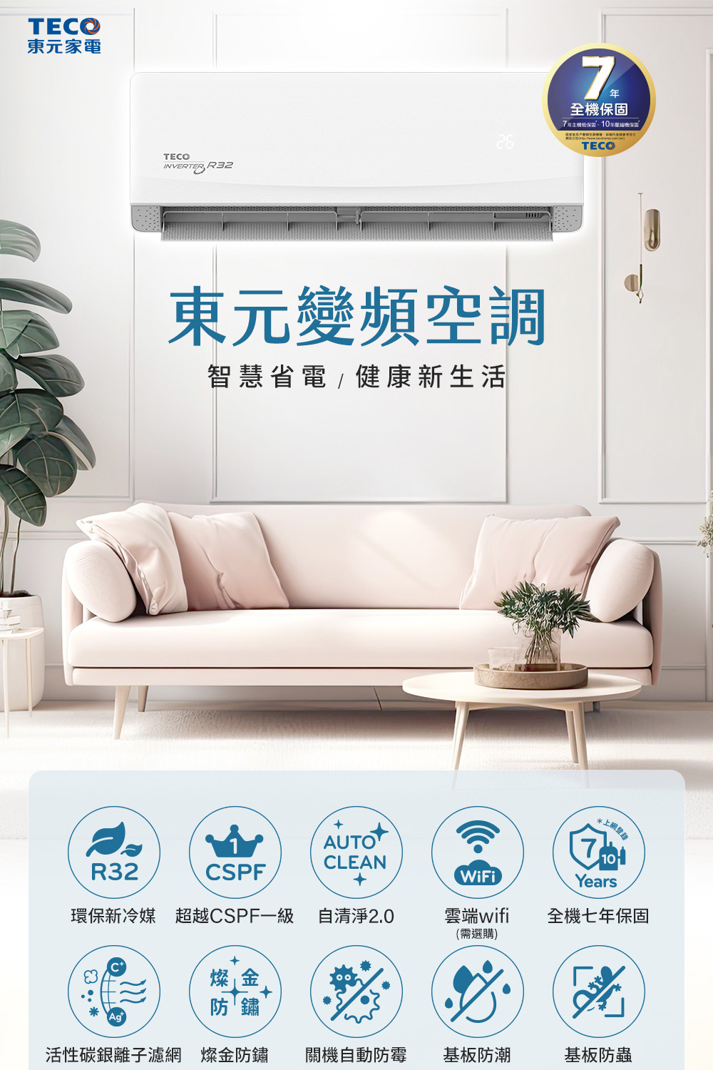 【TECO 東元】MA40IH-GA5/MS40IH-GA5 精品變頻冷暖分離式冷氣|7-8坪適用|1級能效