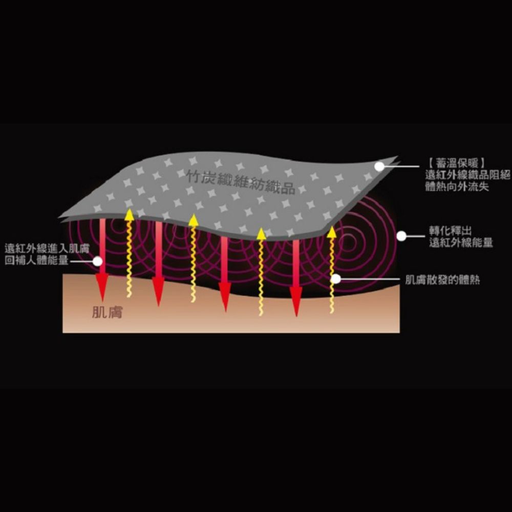 材質:尼龍(鍺全效機能紗)68%,彈力紗11%,聚酯纖維(含竹炭)21%
