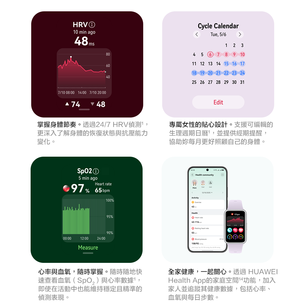 開啟熄屏顯示、心率常開、夜間使用科學睡眠、開啟血氧自動檢測、壓力檢測,每周平均鍛煉 60 分鐘、開啟訊息通知(每天 50 次訊息、6 次來電、3 次鬧鐘)、每天亮屏 500 次。