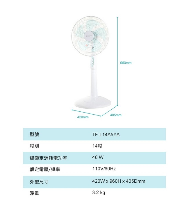 TATUNG 大同 14吋AC直立風扇(TF-L14A5YA)