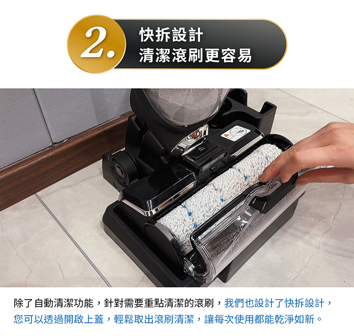 ◎ 商品內容物:清潔托盤充電座含充電器 x1 、淨水箱 x1、污水箱 x1、髒污分離器 x1、超細纖維滾刷 x1、清潔刷 x1、清潔劑1公升 x1、高效雙層過濾網 x1、說明書x1、保固卡x1
